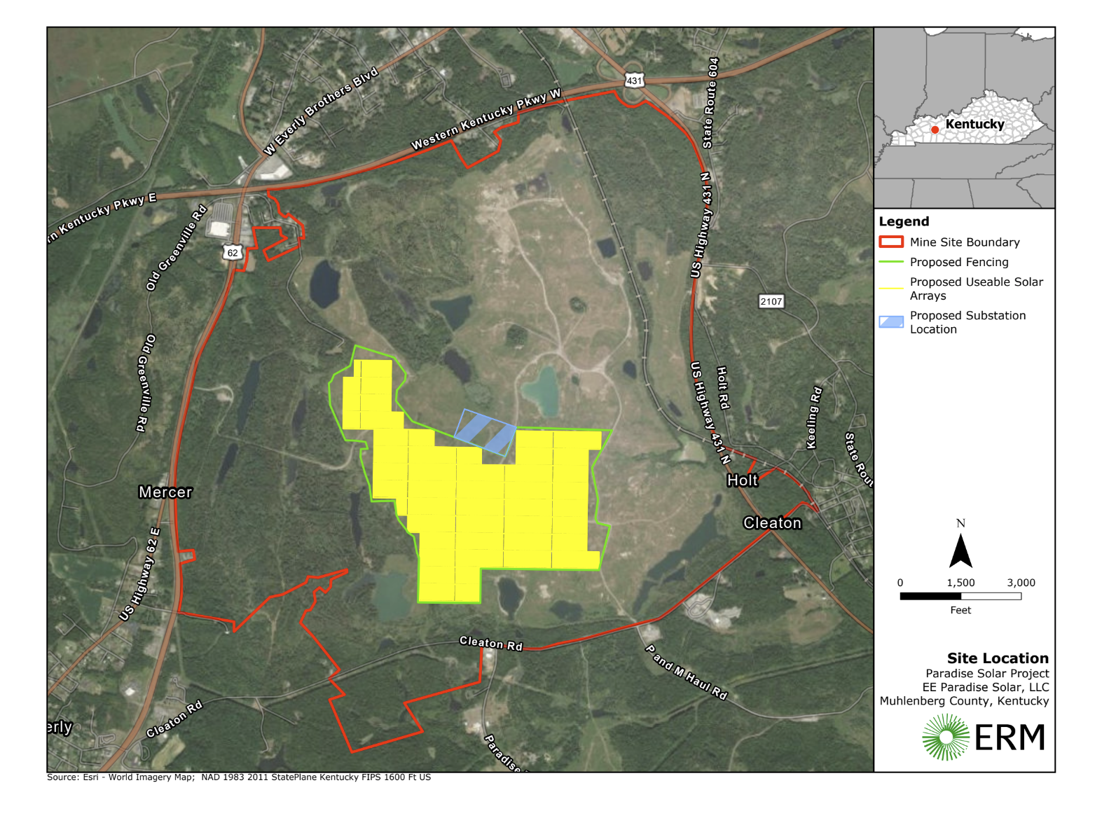 EE Paradise Solar, LLC is a proposed electric-generating facility in Muhlenberg County, Kentucky. Sitting on approximately 600 acres in Central City, the proposed Project will produce up to 80-megawatts of electricity (enough to power approximately 7,000 homes).